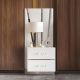 • Sleek, Modern Design: The sophisticated look is achieved with the gleaming white finish, mylar accents, and acrylic drawer pulls.