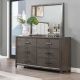 The Landon Two-Piece Dresser and Mirror Set is a perfect blend of durability, style, and functionality, designed to enhance any bedroom with its sophisticated appeal. Crafted from solid Pine, high-quality engineered woods, and genuine Mindi wood veneers, this set is built to last while highlighting the natural beauty of wood with its multi-step walnut finish and subtle gray undertones. The 6-drawer dresser offers ample storage with dovetailed drawers that glide smoothly on full-extension slides, ensuring both functionality and ease of use. The mirror, framed with elegant picture moldings and encasing crystal-clear, low-distortion beveled glass, provides a flawless reflection that adds a touch of sophistication to the room. Thoughtful details such as smooth, snag-free drawer interiors and velvet-lined top drawers protect your valuables, while modern flat bar pulls add a distinctive, contemporary touch. The Landon Dresser and Mirror Set combines practicality with timeless design, making it a valuable addition to any bedroom.