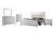 • Glitz and Glam Details: Crystal button tufted padded headboard, gleaming White finish, mirrored trims, crystal studded drawer pulls, and alligator embossed inlays evoke a Hollywood glam appeal.