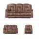 The Morello 3 Piece Reclining Sofa, Console Loveseat, and Glider Recliner in Brown offers an exceptional blend of comfort and style, making it a perfect addition to any living room. This set includes a couch, a console loveseat, and a recliner, all upholstered in sumptuously soft 100% polyester fabric. The saddle brown color beautifully mimics the look of leather, providing a luxurious appearance without the high cost. With double-stitch detailing, the Morello set ensures durability and sophistication, while plush, overstuffed arm, seat, and back cushions enhance overall comfort. The fully upholstered chaise recliner footrests deliver ultimate relaxation, and the recliner’s smooth gliding action offers soothing motion for added comfort. Built with hardwood and manufactured wood frames, coil spring cushions wrapped in resilient foam, and no sag seat suspension, this set guarantees long-lasting support and comfort. The loveseat features a center console with storage for remote controls and built-in cupholders for your beverages. The casual, transitional style of the Morello set, combined with leather-look upholstery and overstuffed cushioning, creates a comfortable, lived-in ambiance for your home. Invest in the Morello 3 Piece Set for a combination of style, comfort, and practical features that enhance your living space.