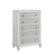 Introducing the Stardust Chest, a captivating piece designed to bring a touch of modern luxury to your bedroom. Crafted with meticulous attention to detail, this chest is constructed from durable manufactured wood, featuring an eco-friendly decorative laminate and UV coating for enduring quality. The sleek white finish is elegantly complemented by glamorous silver accents, adding a dose of sophistication to your space. Adorned with sparkling Poly/Cotton fabric and shimmering crystal hardware, this chest exudes opulence and charm. Illuminate your room with the integrated LED lighting, accentuating the captivating style of this exquisite piece. Inside, the drawers are thoughtfully designed with English dovetail joinery, full extension glides, finished interiors, and felt-lined top drawers, ensuring both beauty and functionality. With diamond-style accents, silver mylar trims, and accent lighting, the Stardust Chest is the perfect choice for those seeking unparalleled sophistication and style in their bedroom decor.