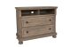 The Allegra 2 Drawer Media Chest in a sophisticated pale pewter finish combines durability, style, and practicality, making it a standout addition to any bedroom or living space. Expertly crafted from solid Mindi wood, engineered woods, and wood veneers, this media chest showcases the natural beauty of Mindi's rich grain while offering exceptional durability. Its resistance to decay ensures that it remains a stunning centerpiece for years to come, while the use of sustainably sourced materials makes it an environmentally responsible choice. The meticulous multi-step finish, enhanced by a delicate brush treatment and subtle white hang-up effect, adds depth and character, making this piece a timeless addition to both traditional and contemporary interiors. Built with heirloom craftsmanship, the chest features four-corner English dovetail joints and smooth-rolling full-extension glides for easy access, ensuring strength and longevity. The two generously sized drawers provide ample storage, while the open cubby offers convenient access to your media equipment. Designed with functionality in mind, this media chest can accommodate a 55" TV, seamlessly blending modern convenience with stylish design. The Allegra Media Chest is an excellent choice for those seeking a versatile, durable, and elegant storage solution.