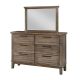 The Cagney Dresser Mirror in Brown is a masterful blend of durability, timeless charm, and functional elegance, making it a perfect complement to any bedroom. Meticulously constructed from solid Rubberwood, premium engineered woods, and authentic Acacia wood veneers, this mirror is designed to last while preserving the natural warmth and beauty of the wood. The multi-step finish in rich tones of brown and gray, hand-rubbed to perfection with a delicate light glaze, enhances the intricate, aged details, evoking a sense of heritage and enduring craftsmanship. The gently rounded corners and expertly distressed accents add character, making this piece both visually appealing and built to last. The mirror features wide moldings that encase crystal-clear, low-distortion beveled glass, providing a flawless reflection that enhances the sophistication and elegance of any space. Whether paired with the matching dresser or used on its own, this mirror is a standout addition to your home decor.