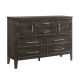 The Andover Six Drawer Wood Dresser in Nutmeg Brown is the perfect blend of durability, functionality, and style, making it a standout addition to any bedroom. Expertly crafted from solid Rubberwood, manufactured woods, and wood veneers, this dresser is built to last, showcasing the natural beauty of real wood. The rich Nutmeg Brown finish undergoes a meticulous multi-step process, including sand-throughs and white glazing, which imparts a weathered yet sophisticated appeal, beautifully highlighting the wood’s natural grains and unique characteristics. The Andover dresser’s clean lines and modern rustic design are complemented by sleek, elongated metallic handles that add a touch of sophistication, contrasting elegantly against the warm, dark wood finish. Framed drawer fronts provide added depth and dimension, while the sturdy block-style legs ensure a solid foundation that underscores the dresser's robust and enduring structure. The drawers glide smoothly on Kenlin drawer glides, ensuring reliable operation, and feature dovetail joinery, reflecting superior craftsmanship and lasting quality. This dresser not only offers ample storage but also enhances your bedroom’s style with its timeless design.