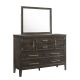 The Andover Dresser Mirror in Nutmeg Brown is a perfect complement to any bedroom, combining durability, style, and functionality. Expertly crafted from solid Rubberwood, manufactured woods, and wood veneers, this mirror is built to last while showcasing the natural beauty of real wood. The rich Nutmeg Brown finish is achieved through a meticulous multi-step process, including sand-throughs and white glazing, which imparts a weathered yet sophisticated appeal, highlighting the unique grains and characteristics of the wood. The pristine, low-distortion beveled glass is beautifully encased in picture frame-style moldings, offering a clean and refined look that enhances any space with timeless elegance. This mirror not only serves a practical purpose but also adds a touch of sophistication to your bedroom decor.