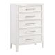 The Andover Five Drawer Wood Chest in White combines durability, functionality, and timeless style, making it a standout addition to any bedroom. Expertly crafted from solid Rubberwood, manufactured woods, and wood veneers, this chest is built to last while highlighting the natural beauty of real wood. The semi-gloss white finish offers a crisp, versatile appeal that effortlessly complements a wide range of décor styles, whether modern or traditional, enhancing your space with a fresh and refined look. The Andover 5 Drawer Chest embodies understated contemporary design with clean lines that create a seamless and cohesive aesthetic. Sleek, elongated metallic handles add a touch of sophistication, standing out gracefully against the pristine white finish, while framed drawer fronts provide visual depth and dimension. Supported by sturdy block-style legs, this chest ensures a solid foundation, reinforcing the collection’s robust and lasting construction. The drawers glide effortlessly on robust Kenlin drawer glides, ensuring smooth and reliable operation, and feature dovetail joinery, reflecting superior craftsmanship and enduring quality. This chest offers ample storage space while enhancing your bedroom with its elegant and refined design.