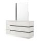 The Paradox Mirror in White is a perfect blend of contemporary style and superior functionality. Featuring a gleaming white gloss laminate finish, it offers a sleek, modern look with the added benefits of scratch and water resistance. This mirror is constructed using a combination of solid and manufactured woods, ensuring long-lasting durability. It utilizes low distortion glass to provide a clear reflection, enhanced by the glittery silver mylar inlay. This mirror not only adds a touch of elegance to any room but also complements the Paradox collection, transforming your space into a high-style retreat.