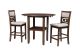The small space friendly Gia Counter Drop Leaf Table and Chair Set has two 8" drop down leaves that transform this dining table from a 42" round dining set to 24" wide, fitting into compact spaces with ease. The counter table and chair legs are crafted of solid Rubberwood to add strength and stability. Elegant reverse diamond Mindi wood veneer dining table top accents the beautiful wood grains which are highlighted by the multi-step traditional brown cherry finish The set includes two comfortable counter height chairs with 100% polyester upholstered seat cushions and backrests, and wood footrests. The final touch is Gia's signature interlocking chain design on the chair back, giving this welcoming dining set a touch of sophistication. The result is a casual, contemporary counter dining set that ideal for dining rooms, kitchen nooks, dorms or game rooms.