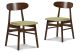 The New Classic Morocco Dining Chairs are a picture of Mid-Century Modern design with tapered legs, curved oval seatbacks, and classic walnut brown color. Easy care, green 100% polyester foam cushions provide comfortable seating. A perfect accent chair in any room.