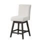 The High Line Counter Height Swivel Chairs in White offer a blend of durability, comfort, and functionality. Each set includes two counter swivel stools, expertly crafted from solid Acacia and Rubberwood, complemented by high-quality manufactured woods and Birch veneers to ensure long-lasting durability and stability. These chairs are upholstered in luxurious bouclé fabric, known for its exceptional durability, making them ideal for frequent use. The unique looped texture provides a plush, comfortable seating experience, adding both elegance and longevity to your dining area. The side-to-side 180° swivel feature allows for easy conversation, making these chairs perfect for dining rooms, kitchen islands, bars, or as accent chairs. They add both functionality and aesthetic appeal to any space. The High Line Counter Height Swivel Chairs are a versatile and stylish addition to any home, combining practical features with a touch of sophistication.
