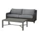 Revamp your outdoor space with the Skye 2-piece 3 Seater Sofa in Gray, accompanied by a matching Coffee Table. Crafted with aluminum frames boasting a baked-on powder finish, this set ensures robustness and enhanced scratch resistance. Its high-density HDPE Wicker offers all-weather durability, mimicking the look of natural wicker while remaining low maintenance and resistant to water, mildew, and fading. Sink into the supportive 6 1/2" thick seat cushions, crafted from high-density foam for enduring comfort. The exclusive SUNDURA® Olefin fabrics are not only breathable but also colorfast and resistant to water, stains, mold, and mildew, ensuring your outdoor furniture stays pristine year-round. With sweeping backs, thick armrests, and gentle curves, this set exudes a versatile style perfect for any outdoor entertainment area. Plus, the durable powder-coated aluminum slat top coffee table offers convenience for any occasion, whether it's drinks, snacks, or simply a spot to rest your feet.