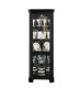 There are many ways to display your favorite objects. If you enjoy refinement and wish to place your curio in a corner, this design is for you. Classic tracery patterns are incised into the front glass to give the curio a distinctive personality. Thiscorner curio is solidly built in select hardwood solids and veneers with our deep Oxford Black finish. It features a mirrored back, high-low halogen lighting, four adjustable glass shelves, adjustable glides for leveling, and a front-opening door.