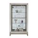 Give your room a chic makeover with this centerpiece. The shape is simple. The antiqued mirror frame insets and Platinum finish are glamorous. Our curio sits off the ground on a refined saber foot. There is no prominent hardware to interrupt the dramaticlook. This curio is sturdily built of hardwood solids and veneers. It includes a mirror back, high/low halogen lighting, and five adjustable glass shelves with plate grooves.