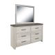 Riverwood has the look and feel of wood, executed in a durable resin laminate. Dark tops contrast with the lighter tones for interest and a modern farmhouse appearance. The dresser features six drawers, offering plenty of storage for your wardrobe, linens and beyond. The collection works perfectly for the master bedroom,...