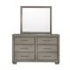 With clean lines and a mid-tone gray wash finish, our Andover Dresser Mirror will easily blend with any interior decor, delivering the perfect solution for almost any bedroom. The beveled dresser mirror enhances the overall aesthetic of a space and offers a practical function for getting ready for your day. This piece creates a warm and inviting atmosphere with a rustic appeal.