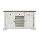 Welcome to the Valley Ridge collection. This fresh interpretation of the farmhouse style incorporates a distressed white finish with gray-washed wood tone tops for a charming counterpoint. This piece features plank-effect surfaces, bracket feet and aged bronze finished hardware. The generous 61" wide server has three...