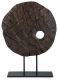 Elegantly adorn your bookshelf, mantel or dining table with this sculpture. Wood in an antiqued brown finish is brimming with natural beauty and adds warmth to your space. A sleekly styled black metal base grounds the piece.