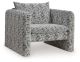 This fashion-forward accent chair keeps comfort and contemporary style at top of mind. Its eye-catching black and white geometric pattern makes a bold statement while remaining versatile enough to pair with other neutrals or pops of color. A low-profile back and streamlined silhouette lend a sophisticated, trend-right vibe...
