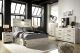 Wispy white finish over replicated Oak grain with authentic touch. Large scaled dark colored handles. Cases feature a framed front and pilasters. All panel headboards (53,57,58,87) feature decorative matte black sconce lights. Side roller glides for smooth operating drawers. All panel headboards (53,57,58,87) can attach to a bolt-on metal bed frame B100-31 or B100-66 respectively. Drawers lined with a faux linen laminate for a clean, finished look. Slim profile dual USB chargers located on the back of the night stand top and the side of the headboards. All side storage options (50,150,60,160) requires the use of the B100-11, B100-12, B100-13 or the B100-14 roll slats. All under bed storage units (50,150,60,160) accommodates to 11"W x 11"D x 11"H cube storage bins. All beds have a panel footboard (52,84,54,56) and storage footboard option (52S,84S,54S, 56S). Queen (157) and king (158) upholstered panel headboards feature double upholstered pads with small nail tack details. Panel headboards (53,57,58,87) can attach to a bolt-on metal bed frame B100-31 or B100-66 respectively. Queen (157) and king (158) gray upholstered panel headboards are compatible with existing underbed storage options and footboards. Safety is a top priority, clothing storage units are designed to meet the most current standard for stability, ASTM F 2057 (ASTM International). Drawers extend out to accommodate maximum access to drawer interior while maintaining safety.