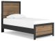 Relaxed yet striking, this twin panel bed brings casual beauty and function to your dream destination. The delightful two-tone treatment blends a fresh replicated walnut grain with a matte black finish that's easy to love. Its simplicity lends a contemporary touch that suits your bedroom's style to a T.