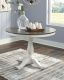 This dining room table has all the right ingredients for farmhouse-inspired style with a casual vibe. It’s beautifully crafted with a fresh white finish and a dark brown wood tone top for gently weathered charm. Table's round design makes for great flow and a friendly, inviting feel.