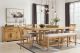 This dining package is a favorite for casual rustic interiors. Casual Rustic design. Made with Rubberwood solids, distressed Pine veneers and MDF substrates. Distressed light brown Pine finish. Counterheight extension table with two center leaves, can sit up to 10 people. Table top with planked effect with...