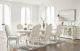 Add a touch of romance to your home with this dining room set. The painted finish and shapely silhouette are all about easy elegance. Turning the focus on the double sculptural pedestal base, this graceful table adds a dash of upscale luxury to the dining experience. The graceful chairs, with a cushioned back and seat and cabriole-shaped front legs, adds a dash of sophistication and upscale luxury to the dining experience. Wide server turns the spotlight on antiqued mirrored doors with overlay fretwork, concealing plenty of storage while adding a dash of sophistication and upscale luxury.