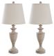 This stylish table lamp set offers a clean, classic look and feel with appealing illumination. Each lamp's metal base features an antiqued gray finish that complements any space. Fabric shades are a lovely final touch.