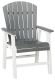 Pull up a chair on the back deck or poolside and gather around for good times. These two-tone outdoor dining chairs have sturdy legs in crisp white, with the arms, seat and back in a cool shade of gray. A slatted seat and back allow drainage to prevent rainwater buildup. Designed to withstand harsh weather, this comfortably casual outdoor duo is made with durable MEGA TUFF™ HDPE material that won't chip, rust or peel.
