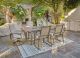 Balancing effortless natural beauty and minimalist design, this outdoor dining group seamlessly brings your contemporary style outdoors. The table sports a wood-look finish, it entices an extension feature that easily expands the table to provide additional space. The chairs sport a sled base design and wood-look finish, it entices with a fresh-feeling neutral sling fabric over the high back. This sleek yet durably made group refines the art of relaxed outdoor living.