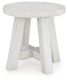 Carefully crafted with farmhouse appeal, this end table features braced posts and a thick round tabletop. The off-white finish adds depth and character to its simple silhouette. You won't be able to resist the organic appeal of this versatile piece.