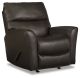 Smartly crafted with combination leather and faux leather upholstery, this rocker recliner personifies accessible luxury. Its handsome deep neutral hue appeals to your contemporary sensibilities. Subtly sloping arms frame the otherwise clean-lined structure with simple flair.