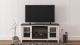 With its two-tone finish and minimalist charm, this TV stand with infrared fireplace insert is right in tune with your relaxed approach to high style. Beautifully made to accommodate your media equipment, it’s well equipped with adjustable shelving, cutouts for wire management and a pair of glass-front doors that enhance the clean-lined aesthetic. The look is ideal for modern farmhouse and contemporary settings. What really turns up the heat: an electric infrared fireplace insert with faux firebrick surround that operates with or without infrared heat and includes a multi flame feature, 7-level temperature setting, five brightness levels and LED glowing embers effect.