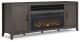 Bring a touch of warmth and beautiful ambiance to your living room. Cool and clean, yet warm and inviting. This TV stand with fireplace insert has so many standout qualities, making it an inspired choice for your dream decor. A prime example of “casual contemporary” style at its very best, the designer piece is dressed to impress in a medium gray-brown finish with a blackened wood grain contrast. Spacious cabinets and shelves are ideal for storing items like your e-reader, TV remotes and other entertainment must-haves. The decorative grille on the upper shelf can conceal a soundbar for a sleek look.