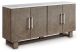 Welcome casual, contemporary style and functionality to your home. This TV stand delivers a mixed-material vibe with its white marble top and grayish brown finish, lending a laid-back look that’s so welcome at the end of a long day. Cabinet doors with framed chevron accents and large silvertone pulls add dimension and...
